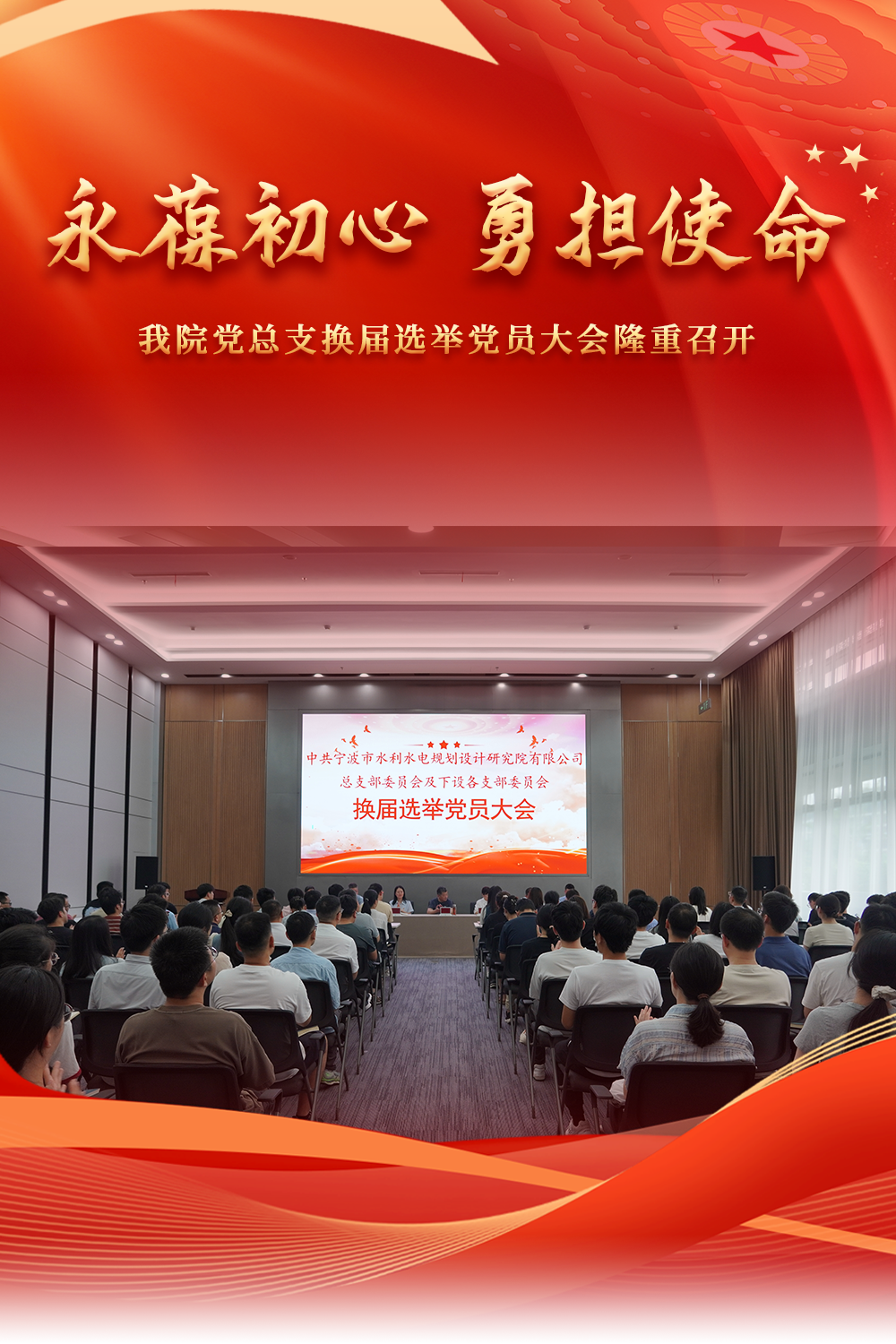發(fā)布日期:2025.06.24 ? ? ? ? ? ?6月23日下午,中共寧波市水利水電規(guī)劃設(shè)計研究院有限公司總支部委員會及下設(shè)各支部委員會換屆選舉黨員大會在我院新大樓多功能廳隆重召開。我院黨總... -