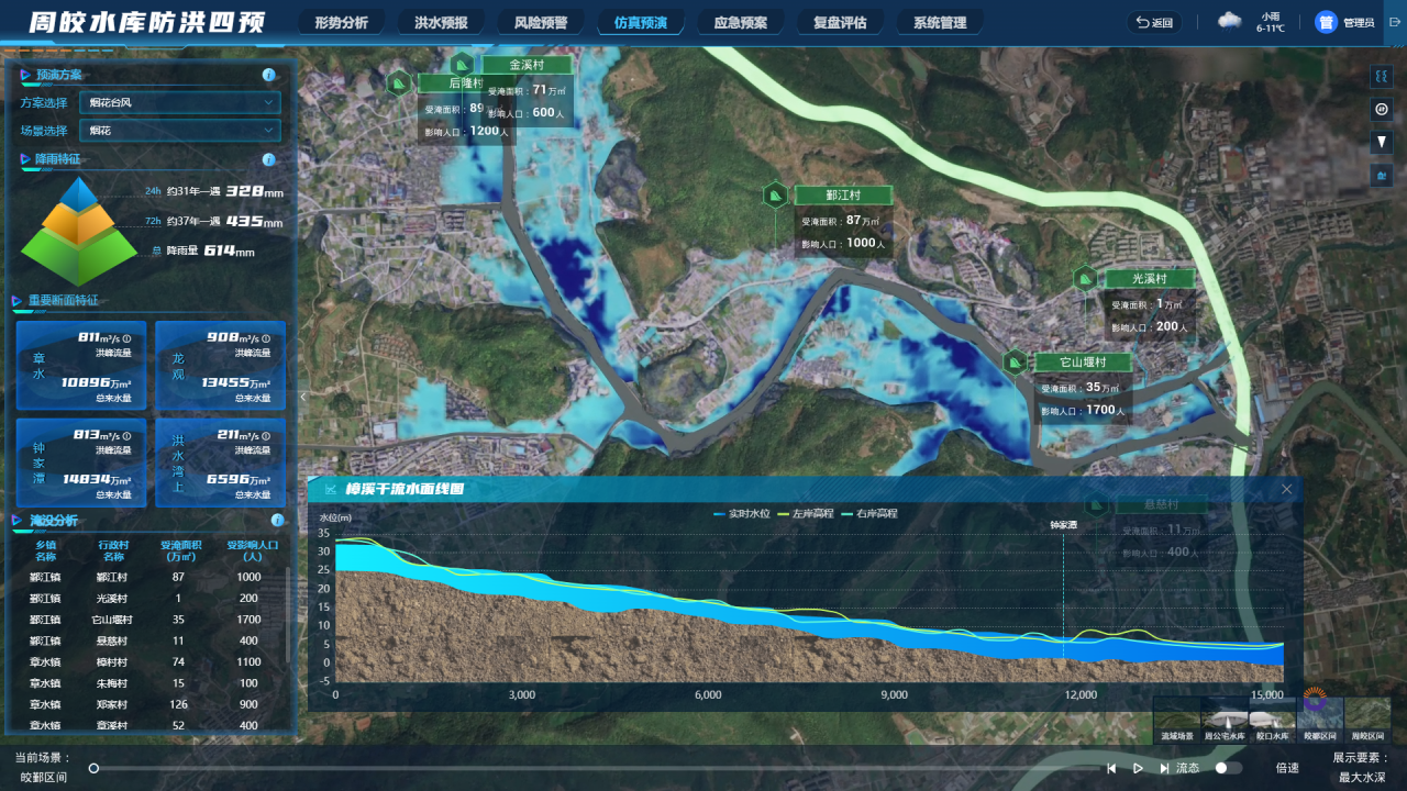 目前,本案例核心成果已在寧波市6座大型和10座重要防洪中型水庫實際應(yīng)用并取得成效,建設(shè)了“寧波市大中型水庫防洪調(diào)度統(tǒng)一管理系統(tǒng)”,助力寧波市水庫管理中型實現(xiàn)全市大中型水庫的防洪調(diào)度統(tǒng)一管理。其中,作為本案例的典型實踐應(yīng)用,“數(shù)字孿生周公宅-皎口梯級水庫”依托水利部 2022 年“數(shù)字孿生流域建設(shè)先行先試工作(2022-2023年)”先行先試試點項目開展實施,并成功支撐周公宅和皎口兩座水庫有效應(yīng)對 2022 年的“軒嵐諾”和“梅花”、2023 年的“杜蘇芮”和“卡努”、2024 年的“貝碧嘉”和“康妮”等多場臺風(fēng)暴雨的實戰(zhàn)驗證。