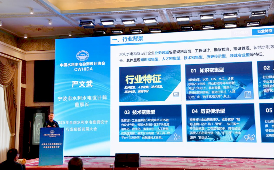我院董事長、院長嚴(yán)文武在大會上作了《大模型賦能水利水電勘察設(shè)計企業(yè)數(shù)字化轉(zhuǎn)型》專題報告,系統(tǒng)分享了我院在人工智能大模型技術(shù)驅(qū)動下,推進(jìn)企業(yè)數(shù)字化轉(zhuǎn)型的實踐路徑與成果經(jīng)驗。