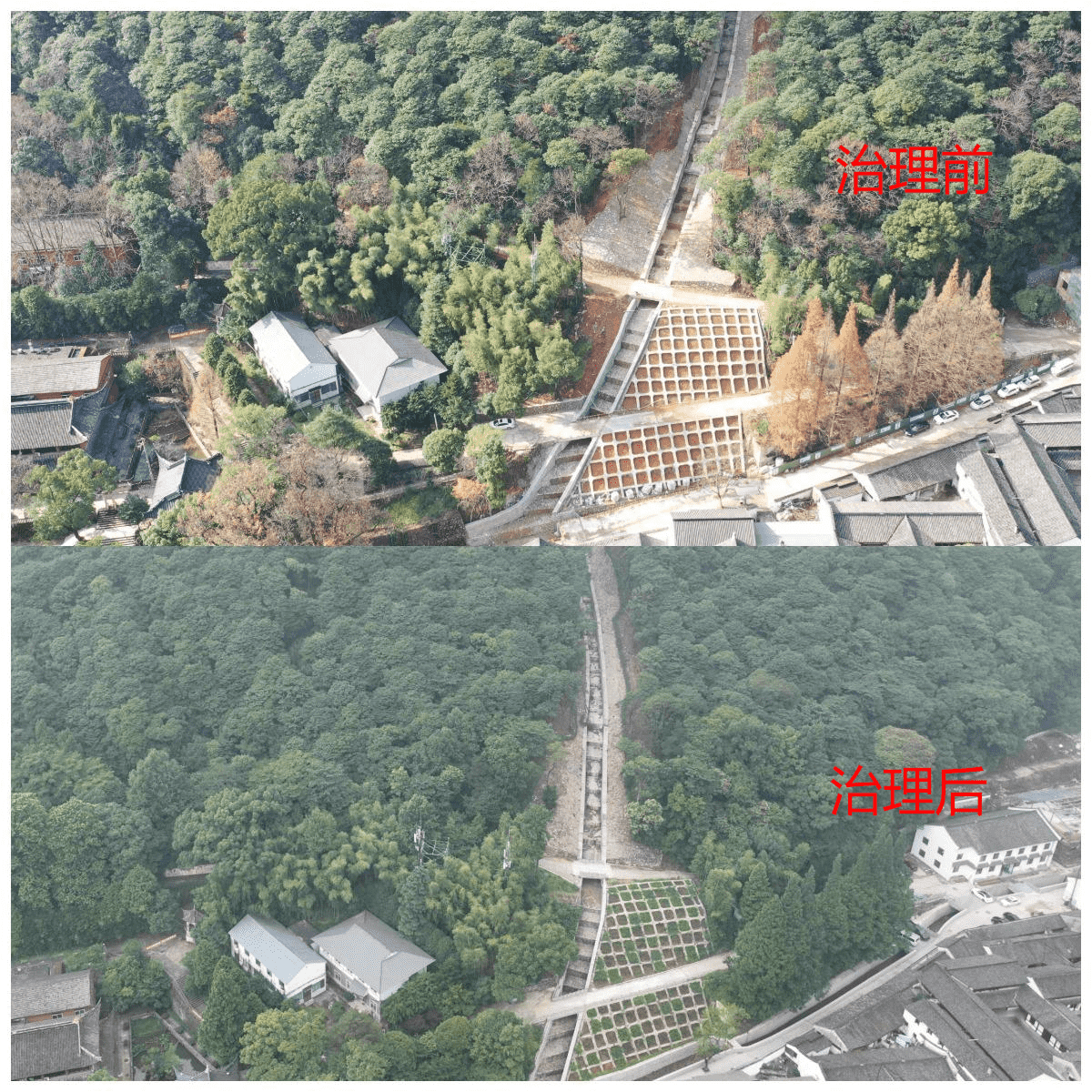 經(jīng)綜合治理后,千年古寺煥發(fā)新機(jī),且在臺(tái)風(fēng)“煙花”過(guò)境寧波時(shí)有效發(fā)揮水土保持功能,避免了泥石流等地質(zhì)災(zāi)害的發(fā)生,不僅維護(hù)了當(dāng)?shù)厣鷳B(tài)環(huán)境穩(wěn)定,更保護(hù)了當(dāng)?shù)厝罕姷纳?cái)產(chǎn)安全。