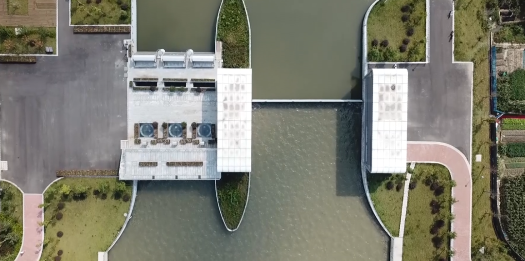 工程規(guī)劃與區(qū)域發(fā)展規(guī)劃高度融合,打通了原洞船河與姚江之間的“斷頭路”,提高了鄞西平原城區(qū)的防洪排澇能力。項目建筑設(shè)計與周邊環(huán)境完美結(jié)合。泵站及閘門上部采用無廠房設(shè)計,水泵機(jī)組采用立式潛水機(jī)組,閘門采用底軸驅(qū)動翻板門,泵站上下游視野通透,觀感效果佳。管理房屋頂設(shè)計為綠化屋頂,管理房隱藏于周邊綠化之中,滿足姚江岸高標(biāo)準(zhǔn)景觀要求。生態(tài)河道設(shè)計符合人文和諧之美。護(hù)岸采用干壘生態(tài)擋塊,中間預(yù)留魚槽設(shè)計,充分體現(xiàn)了生態(tài)環(huán)保設(shè)計理念。