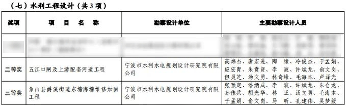 近日,2023年度寧波市優(yōu)秀勘察設(shè)計獎評選結(jié)果出爐,我院設(shè)計的五江口閘及上游配套河道工程和象山縣爵溪街道東塘海塘維修加固工程分別榮獲水利工程設(shè)計組二等獎和三等獎!
