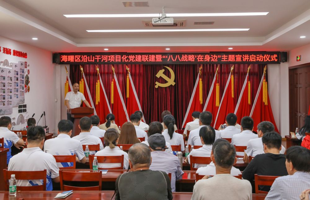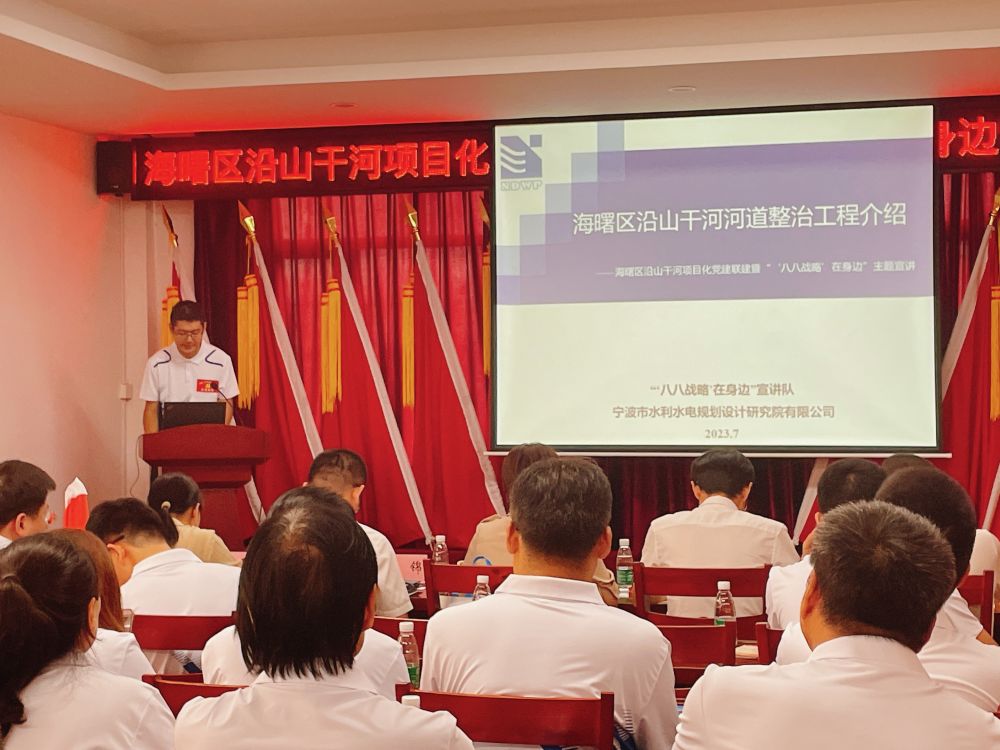 近日,海曙區(qū)直機(jī)關(guān)工委和區(qū)水利局以“五最黨建”為引領(lǐng),在集士港鎮(zhèn)岳童村文化禮堂舉行沿山干河項(xiàng)目化黨建聯(lián)建暨“‘八八戰(zhàn)略’在身邊”主題宣講啟動(dòng)儀式,我院作為沿山干河項(xiàng)目參建單位、活動(dòng)的承辦方參與了啟動(dòng)儀式。我院黨總支書記、副院長(zhǎng)王洪霞,工程設(shè)計(jì)項(xiàng)目組及青年黨員代表十余人參加了上述活動(dòng)。