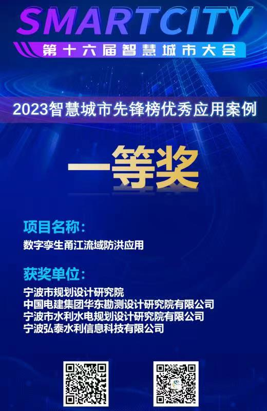 近日,我院與寧波市規(guī)劃設計研究院、華東勘測設計研究院有限公司、寧波弘泰水利信息科技有限公司共同承擔的“數(shù)字孿生甬江流域防洪應用”項目作為寧波智慧城市創(chuàng)新應用成果,精彩亮相“第十六屆中國智慧城市大會”,并榮獲2023智慧城市先鋒榜優(yōu)秀應用案例一等獎,同時入選《中國智慧城市優(yōu)秀應用案例集(2023)》,已由中國電力出版社出版發(fā)行。