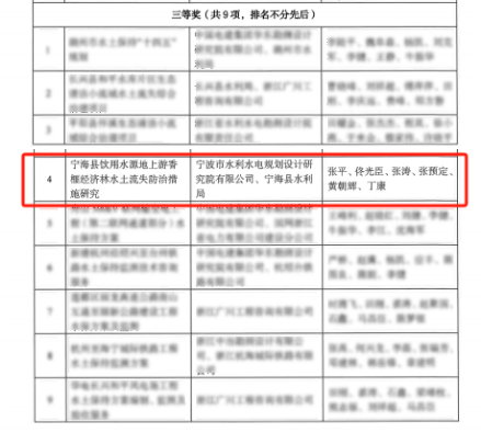 近日,浙江省水土保持學(xué)會(huì)第三屆優(yōu)秀設(shè)計(jì)評(píng)選獲獎(jiǎng)名單出爐,15個(gè)獲獎(jiǎng)工程中,我院成功鎖定一席!此次我院受寧??h水利局委托開展實(shí)施的寧海縣飲用水源地上游香榧經(jīng)濟(jì)林水土流失防治措施研究榮獲三等獎(jiǎng)。該獎(jiǎng)項(xiàng)由浙江省水土保持學(xué)會(huì)設(shè)立,每?jī)赡暝u(píng)審一次,通過(guò)對(duì)水土保持規(guī)劃設(shè)計(jì)領(lǐng)域中取得優(yōu)異成績(jī)的集體和個(gè)人進(jìn)行表彰,從而推動(dòng)全省水土保持行業(yè)的發(fā)展。